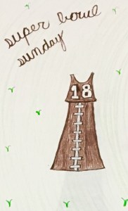 Hello Everyone! For today’s topic we will be talking about something that I am not 100% fluent in. Football 🏈. This sport is huge world wide and not only is it competitive but it brings so many people together. I am not a big sports person (except if you count competitive dance which I do) but I cannot say the same as my family. This year the New England Patriots made it to the Super Bowl and my family couldn’t be more exited. The Patriots our my family’s chosen team so the big game is always very exciting even if you just watch it through the TV you can feel the adrenaline pumping. So for today’s dress I wanted to design something cute and that really channeled footballs energy and I thought what better way to do that then make it look like a football combined with a jersey! Even though I am not a big fan of brown I love this dress I absolutely love it. I would wear this to a game to school and even at home. I hope you enjoy and comment and tell me who you will be rooting for the Patriots or the Rams.