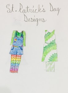 Hello, I hope everyone has their green on today, because as you may have guessed it’s St.Patricks’s Day! This day is always exciting for me because, little unknown fact I’m part Irish and well I love all the holidays even the odd ones. I have two outfits for you today, the first one on the left is my “Follow the Rainbow OutFit”. This outfit is a green baseball style shirt and rainbow stripe leggings under rainbow embroidered overalls. This design is cute, fun, playful, and totally represents the rainbow aspect of St.Patricks Day. The second outfit I have designed is what I like to call is my “Shamrock Splash Outfit”. This out fit is a green, darker green, and white striped tunic/dress over striped leggings. This is probably my favorite out of the two because I would probably wear it more then the other one. Well have a great St.Patricks Day!