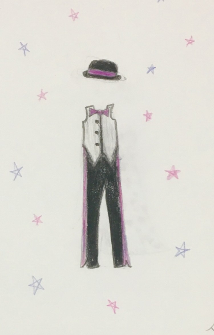Can you say jazz hands? I love to dance it’s one of my many interests it’s so fun and expressive and a great way to exercise. Plus there is all sorts of styles like tap, ballet, hip hop, lyrical, and my two personal favorites jazz and musical theater. I love everything about dance and if you perform then there is a good chance you’ll be wearing a costume. Which brings me to today’s outfit, I designed this cute and classy dance costume that can work for multiple different styles of dance. With a black top hat and silver button down vest this is sure to put a smile on any one who sees it. Also the magenta stripe down the side of the pants matches the bow tie and hat perfectly. You may be wondering why I brought up the specific topic of dance. This particular weekend I attended a amazing dance convention called SHINE. This convention invites famous choreographers from places like L.A. and N.Y.C. to come and help us with our technique and teach us combinations. Being inspired I designed this outfit and am truly satisfied by the results I hope you like it as much as I do. Bye for now.